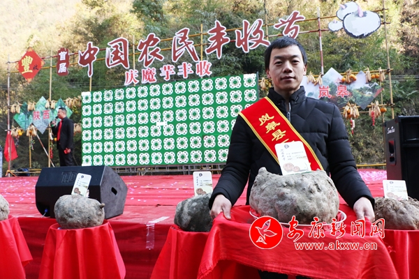 活動(dòng)期間,對(duì)評(píng)選出的嵐皋縣優(yōu)秀魔芋園區(qū)、十佳職業(yè)農(nóng)民、魔芋專業(yè)大戶、魔芋采挖比賽優(yōu)勝集體以及嵐皋縣首屆“魔芋王”進(jìn)行了表彰。在現(xiàn)場(chǎng),一顆重達(dá)10.25公斤的魔芋吸引了觀眾的眼球和拍照,這顆魔芋也被評(píng)選為今年的“魔芋王”。魯琦興致勃勃為“魔芋王”獲得者頒獎(jiǎng),并勉勵(lì)獲獎(jiǎng)農(nóng)民進(jìn)一步堅(jiān)定通過(guò)發(fā)展魔芋產(chǎn)業(yè)增收致富的信心決心。