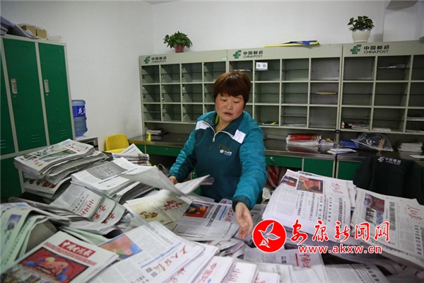 在逐一認(rèn)真登記、核對(duì)之后,趙明翠將裝滿報(bào)刊、信件的兩個(gè)綠色大郵包以及快遞包裹吃力地搬上摩托車。兩個(gè)大郵包跨在了車上,包裹只能捆在座位后面,整個(gè)車體的重量少說(shuō)也有兩三百斤。