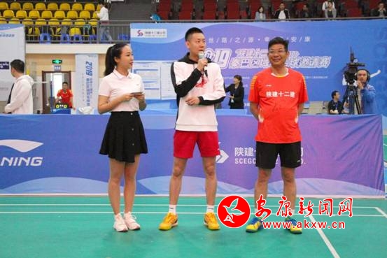 比賽期間,國家隊羽毛球女隊教練,世錦賽男單冠軍陳金來到比賽現(xiàn)場,與比賽手選手合作為觀眾獻(xiàn)上了精彩的表演賽。