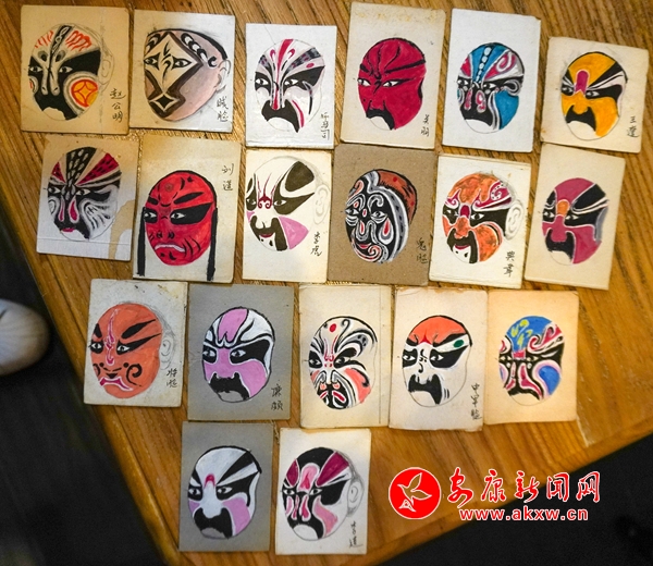 兩位演員分別勾畫了京劇臉譜和漢劇臉譜,京劇臉譜大都左右兩邊對稱,有一種對稱美,而漢劇臉譜則不拘泥于此,更加的獨(dú)特有個性,顏色也較為大膽奔放。