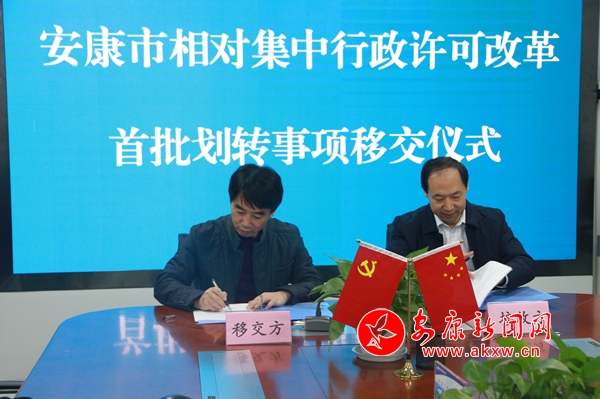 交接會上,市行政審批服務(wù)局宣讀了《市政府辦公室關(guān)于啟用安康市行政審批服務(wù)局行政審批專用章的通知》。市行政審批服務(wù)局相關(guān)領(lǐng)導(dǎo)分別與市場監(jiān)管、交通運輸、衛(wèi)健、教育、司法等5部門負責(zé)人就94項行政許可事項簽訂劃轉(zhuǎn)移交協(xié)議,進一步明確了移交內(nèi)容、移交程序、工作要求。