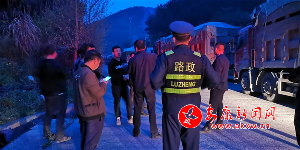 本網(wǎng)訊(記者 張世虎 通訊員 程明)3月26日晚,在346國道安平公路老縣鎮(zhèn)七里溝村附近,路政巡查人員正在對6輛涉嫌超限運輸車輛進行檢查。