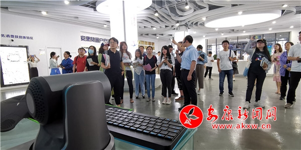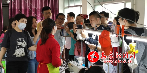 采訪團(tuán)一行首先來(lái)到漢濱區(qū)譚壩鎮(zhèn)松壩社區(qū)毛絨玩具工廠、安康扶貧空間、富硒產(chǎn)品研發(fā)中心和南水北調(diào)監(jiān)測(cè)中心實(shí)地采訪,大家認(rèn)真聆聽(tīng)、仔細(xì)記錄,生怕錯(cuò)過(guò)精彩的細(xì)節(jié)。社區(qū)工廠里村民們一副副笑臉,扶貧超市里琳瑯滿目的扶貧特產(chǎn)、富硒產(chǎn)品研發(fā)中心里圍繞脫貧產(chǎn)業(yè)的科學(xué)成果,無(wú)不蘊(yùn)含著人民群眾的幸福感,而幸福生活的堅(jiān)實(shí)基礎(chǔ)是安康近年來(lái)經(jīng)濟(jì)社會(huì)加快發(fā)展步伐顯現(xiàn)的成果。幾位采訪團(tuán)成員告訴我,他們隨時(shí)拍,隨時(shí)采,隨時(shí)傳回去編輯、制作,盡早把安康兒女走向小康的精神面貌傳達(dá)給全國(guó)人民。