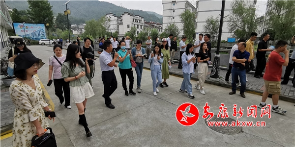 在饒峰鎮(zhèn)勝利村,采訪團(tuán)圍著村支書(shū)楊衛(wèi)東,聽(tīng)他講述勝利村是如何從“后進(jìn)村”變成現(xiàn)在產(chǎn)業(yè)興、旅游旺的新村故事。勝利村村民借助饒峰驛站這個(gè)扶貧基地實(shí)現(xiàn)了增收,而饒峰驛站也給周圍村子帶來(lái)了發(fā)展機(jī)遇。毗鄰的村發(fā)展起了民宿經(jīng)濟(jì),建成30余家農(nóng)家樂(lè)和民宿,還開(kāi)了5家小商店。光明日?qǐng)?bào)記者王遠(yuǎn)方說(shuō),“這幾日采訪的過(guò)程中我感到,幸福感畫(huà)在老百姓的臉上,體現(xiàn)在他們言談舉止中”。
