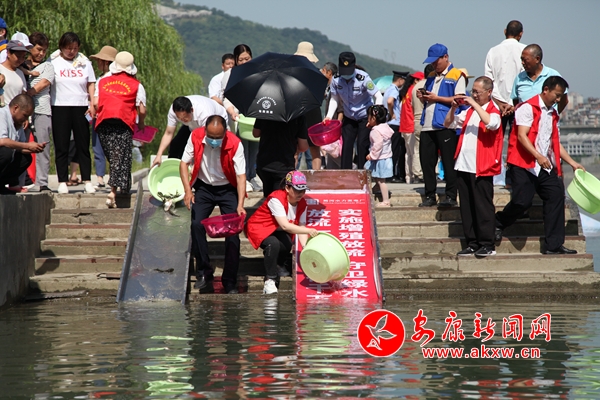 活動現(xiàn)場,省農(nóng)業(yè)農(nóng)村廳授予大唐蜀河水電廠省級“魚類增殖放流示范單位”稱號。省、市農(nóng)業(yè)農(nóng)村部門和大唐蜀河水電廠組織群眾,向漢江投放鳙、鰱等濾食性魚苗和多鱗白甲魚等土著魚苗共50萬尾,為加快恢復水生生物種群數(shù)量,修復水生資源和水域環(huán)境貢獻力量。