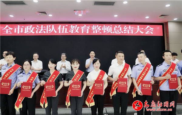 會上,市政法隊伍教育整頓領導小組授予50名同志“全市人民群眾滿意的政法干警”稱號。