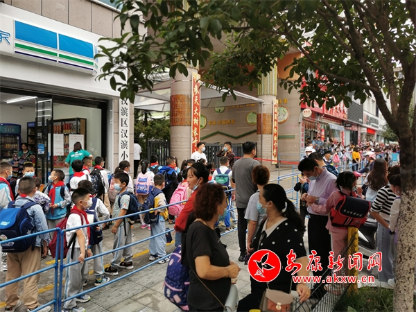 9月1日,新學(xué)期如期開學(xué),安康中心城區(qū)的漢濱小學(xué)、安康陽光學(xué)校、安康市第一小學(xué)的門口秩序井然,小學(xué)生們戴著口罩,精神抖擻排著隊等候進(jìn)入校園。公安、城管在現(xiàn)場加強(qiáng)疏導(dǎo),學(xué)校周邊交通秩序正常,祝小小少年,健康成長,揚(yáng)帆遠(yuǎn)航。(鄭時根 攝)BDD安康新聞網(wǎng)