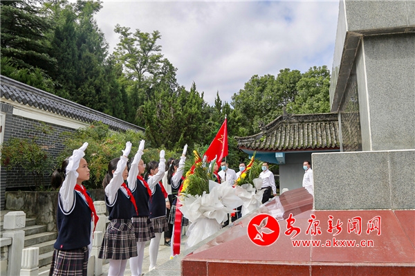 松柏頷首、豐碑矗立,深秋的烈士陵園紀念廣場莊嚴肅穆。上午10時,公祭活動正式開始,現(xiàn)場奏響《義勇軍進行曲》,全場高唱中華人民共和國國歌。國歌唱畢,全場肅立,武文罡恭讀祭文,大家隊列整齊面向烈士紀念碑寄托無盡哀思。少先隊員獻唱《我們是共產(chǎn)主義接班人》,并致少年先鋒隊隊禮,表達對祖國的熱愛之情和對烈士的崇敬之情。