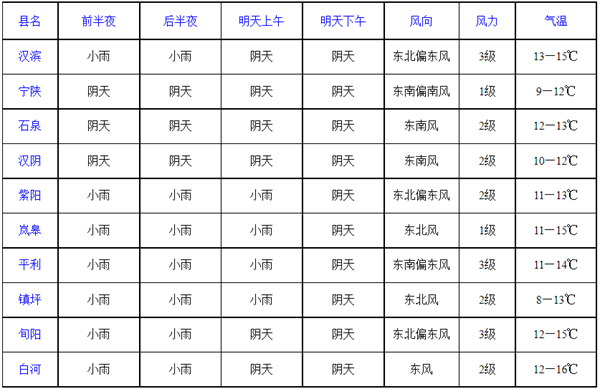 預計今天晚上陰天有小雨,明天白天陰天,南部小雨;12日陰天轉(zhuǎn)多云;13日多云間晴天;14日多云轉(zhuǎn)陰天;15日小雨轉(zhuǎn)中雨;16日小雨轉(zhuǎn)陰天;17日陰天轉(zhuǎn)多云。WWh安康新聞網(wǎng)