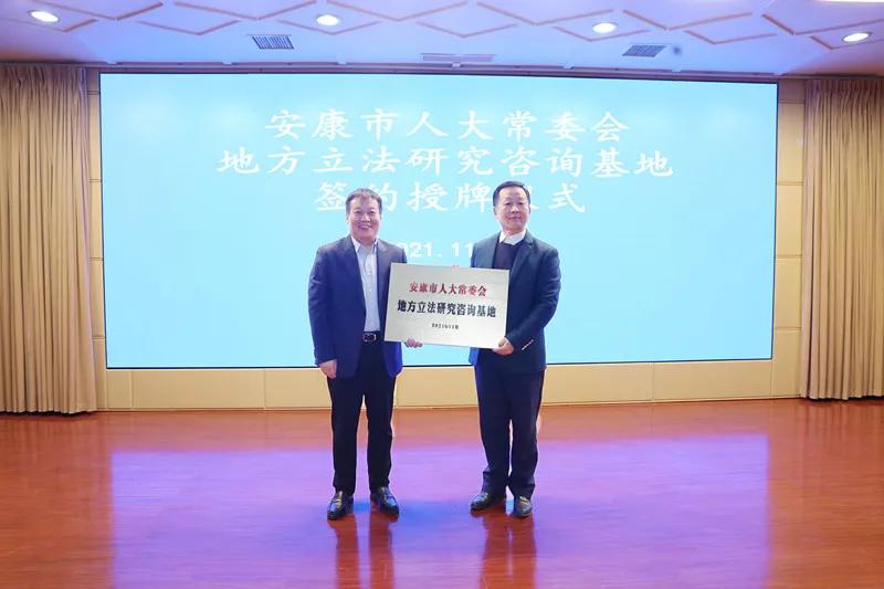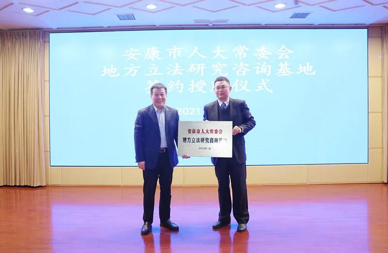 儀式上,市人大常委會法工委與西北政法行政法學(xué)院、安康學(xué)院馬克思主義學(xué)院簽訂了地方立法合作協(xié)議,市人大常委會主任鄒順生向這兩個(gè)學(xué)院頒發(fā)了“安康市地方立法研究咨詢基地”牌匾。