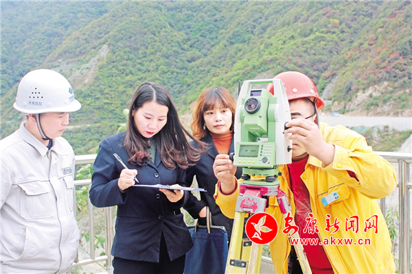 公證員正對引漢濟渭三河口水利樞紐大壩工程取出的碾壓混凝土芯樣現狀進行保全