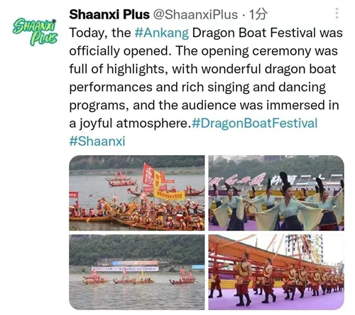 咱們安康龍舟節(jié),不光受到在外安康人熱捧,全國(guó)各地網(wǎng)友更是紛紛為本屆龍舟節(jié)打call。此外,新華通訊社、中央廣播電臺(tái)等駐外記者站及美聯(lián)社更是相繼轉(zhuǎn)發(fā)安康漢江龍舟節(jié)新聞;facebook、Twitter、You Tube等網(wǎng)絡(luò)社交平臺(tái)也紛紛傳播安康聲音。