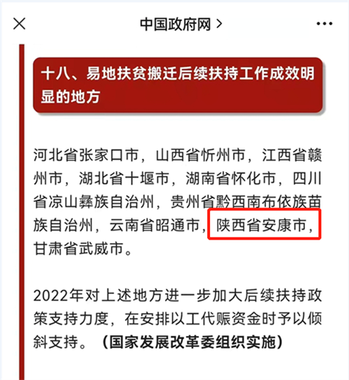 其中,我市入選“易地扶貧搬遷后續(xù)扶持工作成效明顯的地方”,受到督查激勵。2022年,將由國家發(fā)展改革委組織實施,進一步加大后續(xù)扶持政策支持力度,在安排以工代賑資金時予以傾斜支持。Lz2安康新聞網(wǎng)