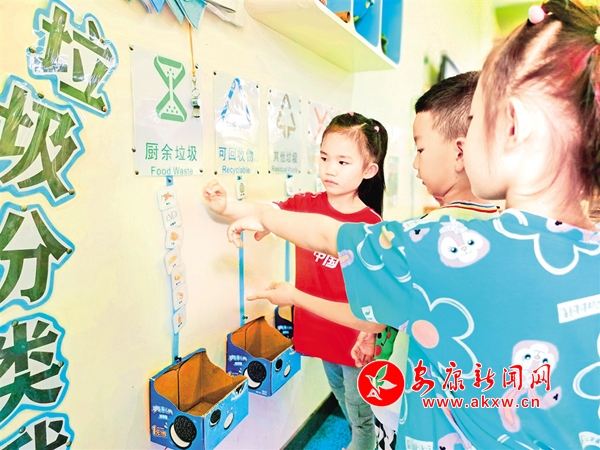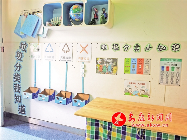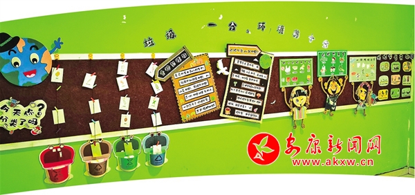 走進(jìn)漢濱區(qū)幼兒園,隨處可見以垃圾分類為主題的展板。該園老師鄭玉介紹:“全園15個班,每個班都設(shè)置有垃圾分類專題角,每學(xué)期不定期開展垃圾分類主題教育活動,每周一圍繞垃圾分類的意義、如何分類、處理辦法和注意事項等定期開展活動。并利用走廊設(shè)置垃圾分類專題區(qū),制作垃圾分類戶外展板,通過微信公眾號和交流群,以“小手拉大手的形式”,帶動家庭參與到垃圾分類行動中來。”