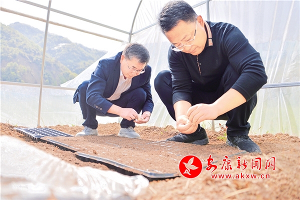 城關(guān)鎮(zhèn)竹林村駐村工作隊在“一畝實踐田”中進行育苗