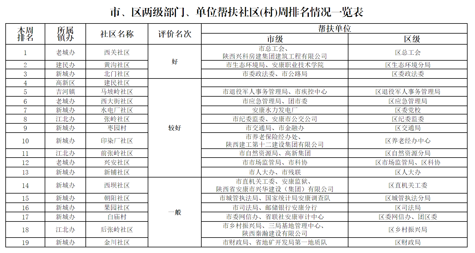 附件:市、區(qū)兩級部門幫扶社區(qū)(村)周排名情況一覽表