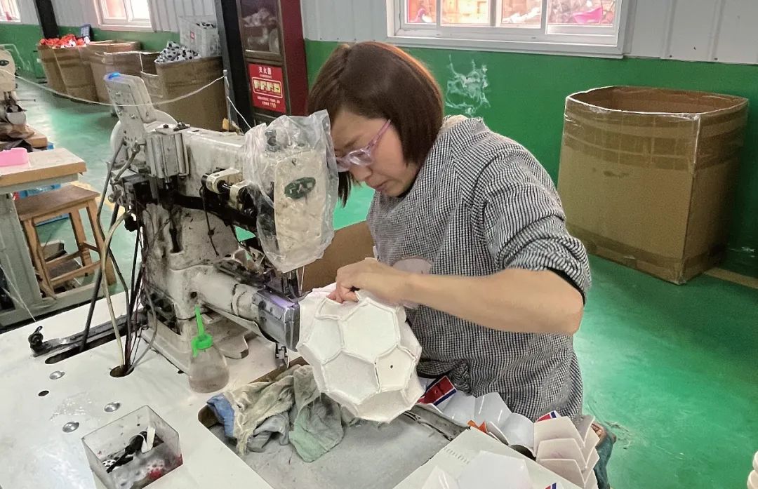 近日,在漢陰縣興隆佳苑社區(qū)工廠內(nèi),40歲的脫貧戶張麗正在“縫制足球”,每月平均收入2600元左右。農(nóng)民日報·中國農(nóng)網(wǎng)記者 韓嘯 攝