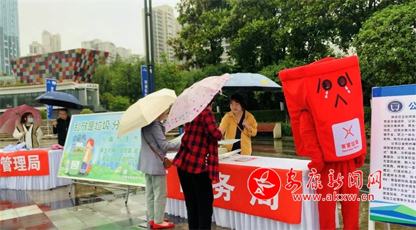 活動(dòng)當(dāng)日陰雨綿綿,北辰公園人頭攢動(dòng)。在一排排豐富多彩的宣傳展板和生活垃圾分類成果展區(qū)前,不少市民駐足觀看和詢問有關(guān)情況,工作人員耐心解答并熱情洋溢地宣傳普及生活垃圾分類知識;顒(dòng)現(xiàn)場還設(shè)置有妙趣橫生的環(huán)保游戲,身著環(huán)保標(biāo)識的“人形玩偶”頻頻與大家互動(dòng),在輕松歡樂的氛圍中傳遞環(huán)保理念。