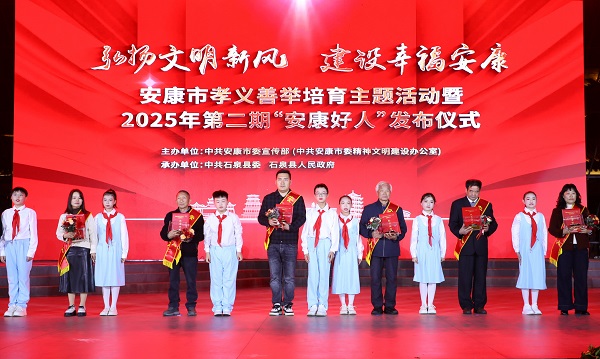 本次活動(dòng)以“弘揚(yáng)文明新風(fēng) 建設(shè)幸福安康”為主題,由市委宣傳部主辦、石泉縣委和縣政府承辦,旨在深入學(xué)習(xí)貫徹黨的二十屆四中全會(huì)精神,扎實(shí)推進(jìn)崇德向上幸福安康建設(shè);顒(dòng)現(xiàn)場,通過播放典型人物短片、現(xiàn)場互動(dòng)訪談等形式,生動(dòng)再現(xiàn)了陳登發(fā)、高虎、黃壽琴等好人代表的感人事跡。市級(jí)領(lǐng)導(dǎo)及“中國好人”“陜西好人”等先進(jìn)典型代表為28名新入選的“安康好人”頒發(fā)紀(jì)念證書;顒(dòng)現(xiàn)場同時(shí)發(fā)布了2025年安康市“新時(shí)代好少年”名單,24名青少年獲得殊榮。