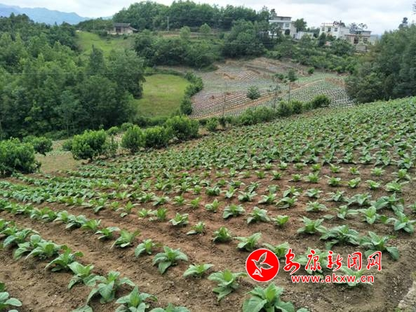 陽(yáng)春三月,沿著“柏油村道”蜿蜒而上,新栽種的楊梅、車?yán)遄雍丸凌怂纳⒂诘貕K中。牛兒愜意吃草,不遠(yuǎn)處的大棚內(nèi)煙苗吐露新綠,新修的標(biāo)準(zhǔn)化烤煙房排列整齊!