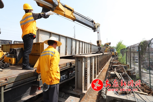 本網(wǎng)訊 (記者 魏濤)4月15日14時(shí),經(jīng)過4個(gè)小時(shí)的緊張施工,安康城區(qū)環(huán)城干道江北段建設(shè)工程(簡稱北環(huán)線)下穿安康東站V場通道工程首條股道D便梁架設(shè)順利完成,……