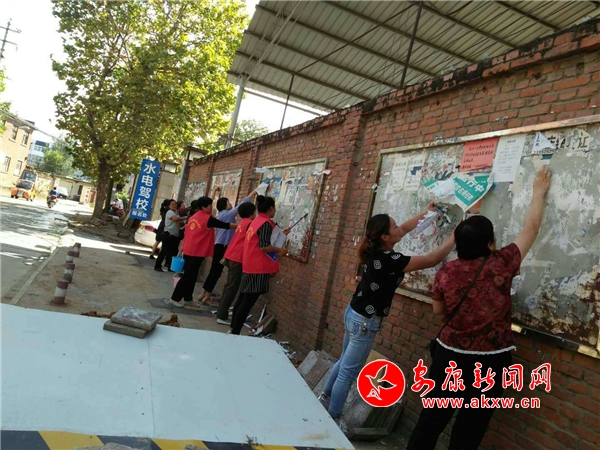 后張嶺社區(qū)組織志愿者、低保戶和保潔員對轄區(qū)的小野廣告進(jìn)行集中清理。……