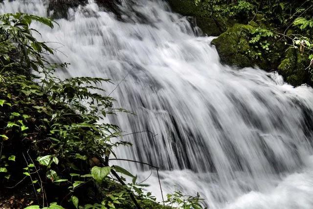 7月7日拍攝的峽谷里似玉帶的瀑布。新華社記者陶明 攝在巴山深處的陜西省平利縣八仙鎮(zhèn)靛坪村,有一處長約近10公里的峽谷河流,鑲嵌著120余個常態(tài)瀑布和季節(jié)性瀑布……