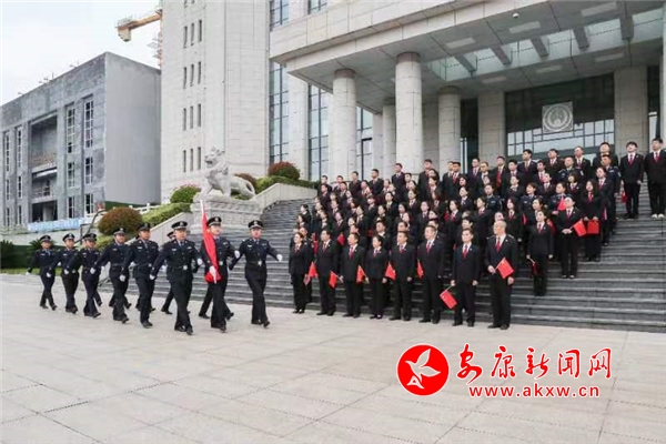 上午8時,升旗儀式正式開始,全體干警在辦公樓前整齊列隊。司法警察組成的國旗護(hù)衛(wèi)隊英姿颯爽,邁著堅定而整齊的步伐,護(hù)衛(wèi)五星紅旗行至升旗臺。鮮艷的五星紅旗伴隨著雄壯的國歌聲冉冉升起,迎風(fēng)飄揚。全院干警肅穆而立,滿懷崇敬之情向國旗行注目禮,表達(dá)對祖國的無限忠誠與熱愛和忠誠履行審判職責(zé)的堅定信念。