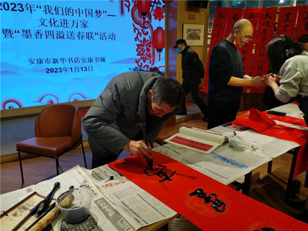 歡天喜地度佳節(jié),張燈結(jié)彩迎新春。春節(jié)將至,為積極踐行社會主義核心價值觀,傳承弘揚中華優(yōu)秀傳統(tǒng)文化,豐富群眾精神文化生活,營造歡樂喜慶的節(jié)日氛圍,助力創(chuàng)建全國文明城市。1月13日,安康市新華書店在安康書城舉辦“我們的中國夢”——文化進(jìn)萬家暨“墨香四溢送春聯(lián)”活動。