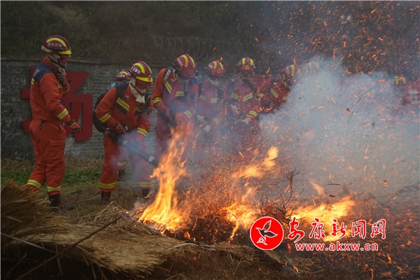 演練緊盯實戰(zhàn)需求,擬定恒口示范區(qū)安全村附近林地發(fā)生森林火災(zāi),真煙真火設(shè)置災(zāi)情,調(diào)集支隊森林火災(zāi)處置專業(yè)隊力量共計6車60人前往處置。采取全實景模擬、全流程處置、全要素開展,從無人直升機中繼通信、山林火勢堵截、隔離帶開辟等多方位展示森林火災(zāi)特點、難點,示范了此類災(zāi)情處置要點、關(guān)鍵點,取得了較好預(yù)期效果。