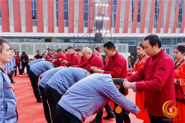 活動現(xiàn)場,九位非遺傳承人師傅為徒弟授予紀(jì)念章,徒弟鞠躬致敬,彰顯匠心傳承與品質(zhì)堅(jiān)守;顒又2025乙巳年封藏紀(jì)念酒發(fā)布,白酒專家鐘杰進(jìn)行了權(quán)威解讀,他表示,此紀(jì)念酒秉持“糧香,曲香、杏仁香、果香、蜜甜香”的理念,具有口感“醇香典雅、甘潤挺爽”的核心特征,是封壇中的優(yōu)中選優(yōu),品質(zhì)上乘之作。