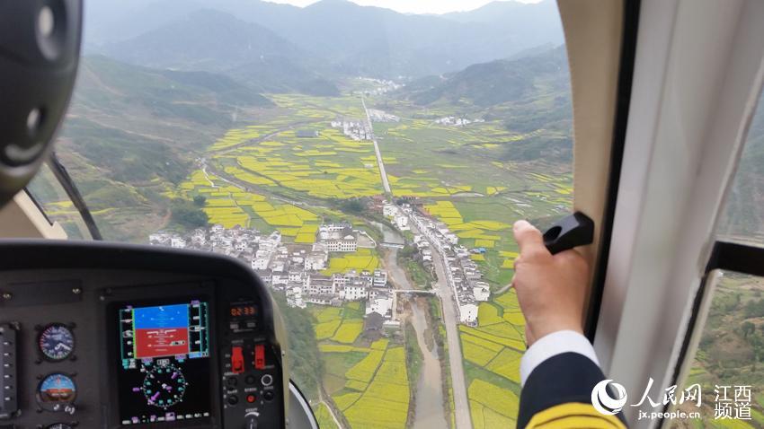 婺源推出乘直升機看油菜花 空中俯瞰金色花海