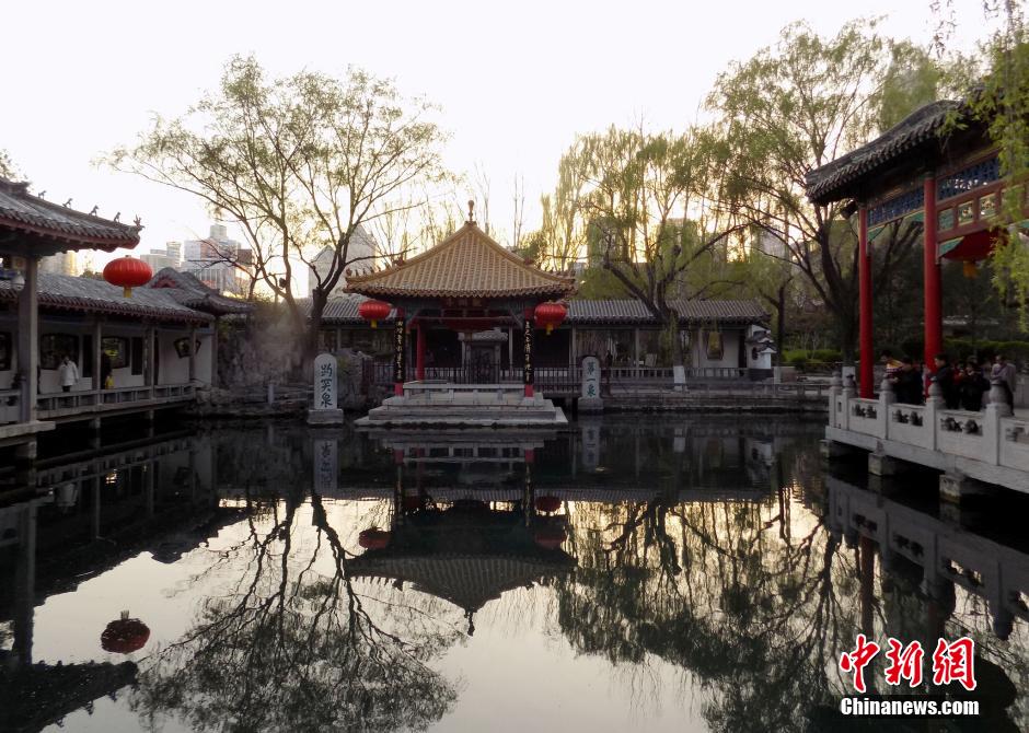 2016年3月27日,濟(jì)南著名的趵突泉和黑虎泉都已經(jīng)十分虛弱,出水量大減。黑虎泉西側(cè)獸頭僅剩一點(diǎn)流水,停噴在即。 圖片來源:視覺中國(guó)yy2安康新聞網(wǎng)