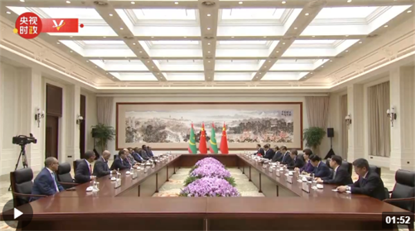習近平指出,歡迎總統(tǒng)先生來華出席成都大運會開幕式。去年年底,我同總統(tǒng)先生在沙特利雅得共同出席首屆中國-阿拉伯國家峰會并舉行會晤,達成許多重要共識,為中毛關系發(fā)展指明了方向。這是你就任總統(tǒng)以來首次訪華,相信這次會晤將為兩國關系未來發(fā)展擘畫新藍圖。