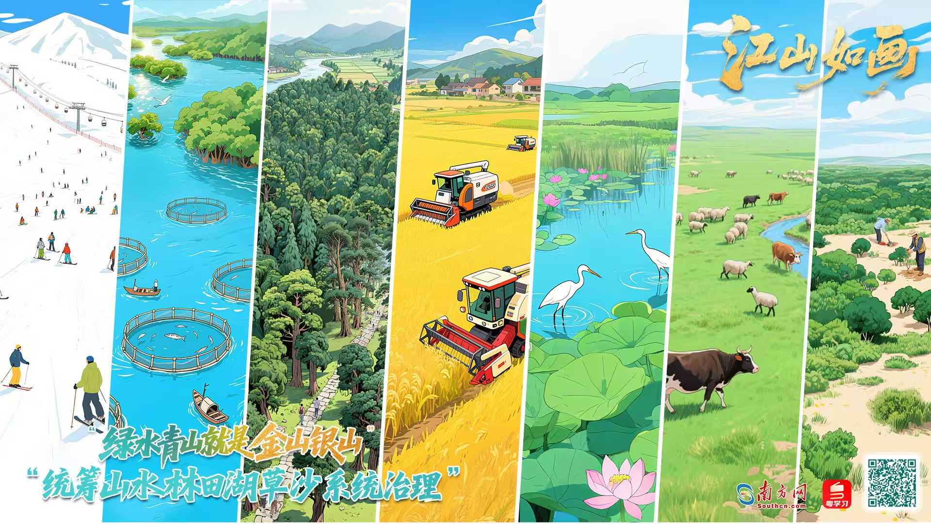 南方網(wǎng)、粵學(xué)習(xí)客戶端策劃制作“兩山”理念提出20周年紀(jì)念長(zhǎng)卷——《江山如畫》,選取習(xí)近平總書記曾實(shí)地考察過的湛江紅樹林、白洋淀、青藏高原等80余個(gè)地點(diǎn),沿海拔線一路攀升,描繪新時(shí)代“山水林田湖草沙一體化保護(hù)和系統(tǒng)治理”的生態(tài)文明建設(shè)新圖景。同步嵌入“習(xí)近平生態(tài)文明思想文庫(kù)”,立體呈現(xiàn)我國(guó)生態(tài)文明建設(shè)理論與實(shí)踐不斷深化、辯證統(tǒng)一的過程。