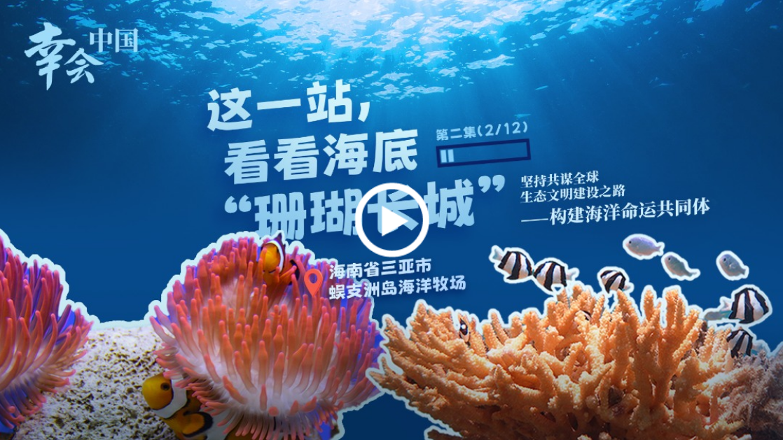 這一站,我們來到了海南三亞,一同潛入這片生命蓬勃的藍色世界。在蜈支洲島,中國首個熱帶海洋牧場,海洋守護者們花了數十年時間培育了30萬株珊瑚,構筑起了一座真正的海底“長城”。海底的珊瑚如森林般繁茂,消失的魚群也因此重回海底家園,海洋生態(tài)仿佛重獲新生。在習近平生態(tài)文明思想的指引下,這里的生態(tài)修復不僅彰顯了保護的重要性,更是共謀全球生態(tài)文明之路的生動實踐。中國堅持守護海洋生態(tài),用行動書寫“海洋命運共同體”的信念。
