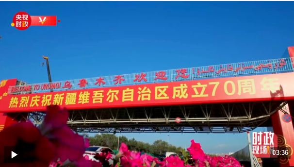 中共中央總書記、國家主席、中央軍委主席習(xí)近平率中央代表團23日下午乘專機抵達烏魯木齊,出席新疆維吾爾自治區(qū)成立70周年慶;顒。14時20分許,習(xí)近平乘坐的專機在天山國際機場降落,等候在停機坪的新疆各族各界群眾熱烈歡呼。習(xí)近平走下舷梯時,少先隊員獻上鮮花。各族群眾代表身著民族服飾,載歌載舞,歡迎總書記的到來,表達對總書記的衷心祝福。