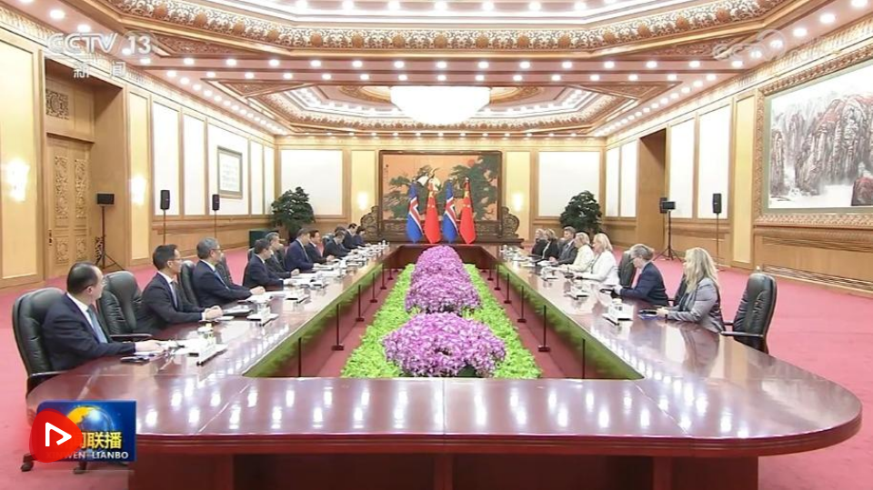 10月14日上午,國(guó)家主席習(xí)近平在北京人民大會(huì)堂會(huì)見來(lái)華出席全球婦女峰會(huì)的冰島總統(tǒng)托馬斯多蒂爾。