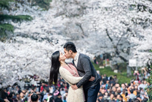 武大櫻花盡開放 游客擠爆校園