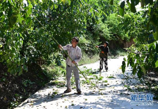 9月6日,陜西周至縣翠峰鎮(zhèn)官莊村的村民在核桃園內采收核桃。近日,陜西多地的核桃進入收獲季,當?shù)剞r(nóng)民搶抓農(nóng)時進行采收,一片忙碌景象。 新華社記者 邵瑞 攝JxK安康新聞網(wǎng)