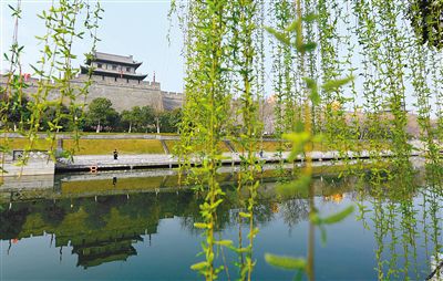 南門附近綠柳成蔭 記者 張宇明 攝