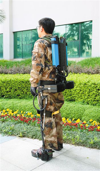 “穿戴式外骨骼助力機器人,是一款智能仿生、單人操作的軍民兩用多功能攜行助力系統(tǒng)!蹦旅窀嬖V記者。從外觀來看,它就像套在人體外面的一件強壯、靈活的“鋼鐵外衣”;穿上后,在人的雙腿外側就會增加一副機械腿,把背部的大部分負重傳遞到地面,同時人的運動靈活性也不會受到太大的影響——負重50kg的行進速度能達到每小時4公里,與普通人正常走路的速度差不多。直白地說,新技術就是讓人可以“舉重若輕、健步如飛”。此外,它還能適應1.6m—1.9m的身高范圍,可連續(xù)工作4小時。穿戴也比較方便:自己穿需要約2分鐘,有人輔助40秒就能穿好,脫卸只需要30秒,并可折疊運輸。