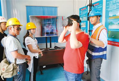 建筑施工單位代表戴上VR鏡體驗(yàn)高空墜落感受。 (首席記者 李明 攝)
