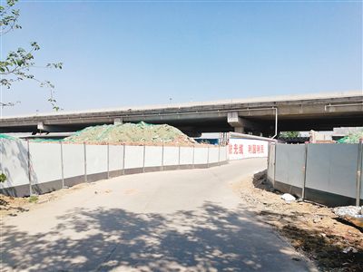 19日,記者前往連霍高速阿房宮段沿線,駕車沿灃明路自西向東與連霍高速并行。一路上在高速橋下記者發(fā)現(xiàn),灃明路兩側(cè)綠化良好,修剪整齊的灌木和郁郁蔥蔥、錯(cuò)落有致的喬木相互映襯,風(fēng)景十分怡人。然而透過綠化帶向南側(cè)看去,僅僅十來米外的高速橋墩下,則能夠見到成片的建筑垃圾,僅僅用防塵網(wǎng)覆蓋,有些甚至直接裸露在外,和灃明路上的綠色景觀形成了鮮明的對(duì)比。