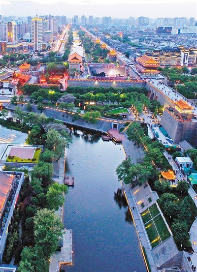 2017年12月,朱雀門至西門綜合改造工程已正式完工。通過河道綜合改造、水資源全面利用、河道水體循環(huán)系統(tǒng)及水質(zhì)處理系統(tǒng)安裝等工程,采用了接觸氧化、底泥消解、生態(tài)修復(fù)等工藝,大幅延長(zhǎng)了再生水使用周期,新增景觀水面面積6.5萬平方米,新增護(hù)城河護(hù)坡綠化面積7萬平方米,有效的節(jié)約了水資源,改善了護(hù)城河水質(zhì)。