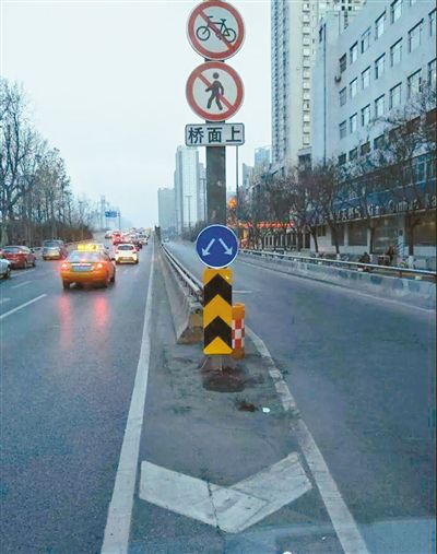 南二環(huán)太白立交東側上橋口增設道路線形變化提示標志 (西安交警供圖)