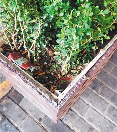 街道兩邊每隔幾米都放置一個(gè)花壇,開得嬌艷的花兒將城市裝點(diǎn)得更加迷人。然而,在太白南路部分路段的花壇里,布滿了丟棄的煙蒂、衛(wèi)生紙、果皮等雜物,成了“垃圾桶”,影響了花壇的美觀、整潔。