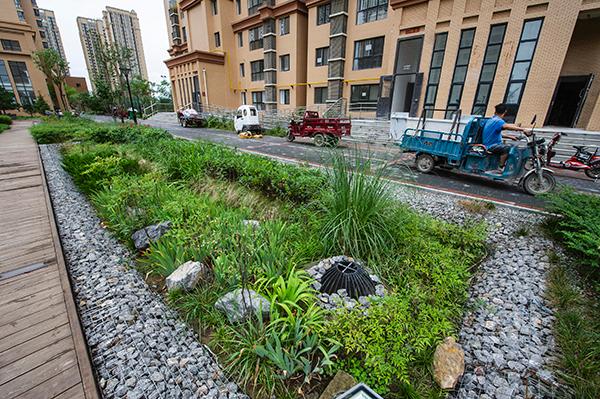 遍布于居民小區(qū)、學(xué)校、商業(yè)場(chǎng)所、公共區(qū)域的雨水收集池等蓄水模塊,則成為了大大小小的蓄滯洪水區(qū),讓雨水最大限度地留下來,得到凈化利用,有序外排。