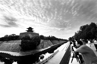 市民在東南城角拍攝夕陽(yáng) 記者 馬昭 攝