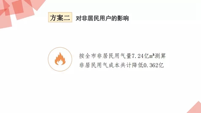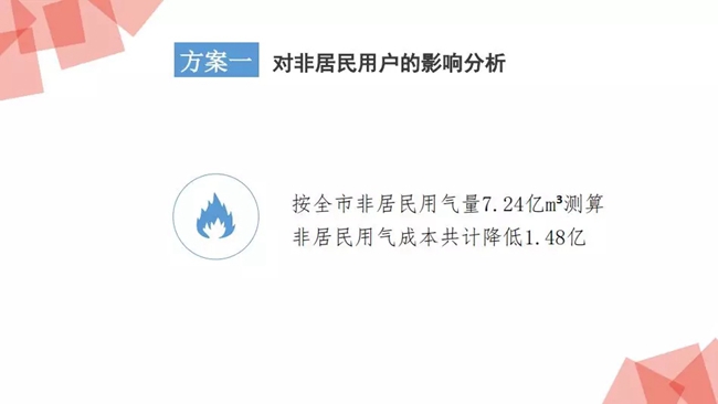 非居民用氣售價由現(xiàn)行的2.30元每立方米調(diào)整為2.25元每立方米,下調(diào)0.05元每立方米。